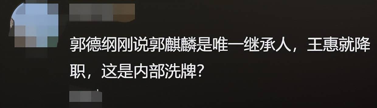 有网友表示“郭德纲刚说郭麒麟是唯一继承人,王惠就降职,这是内部洗牌?”